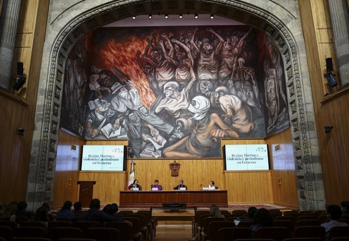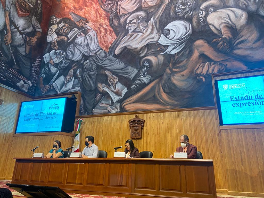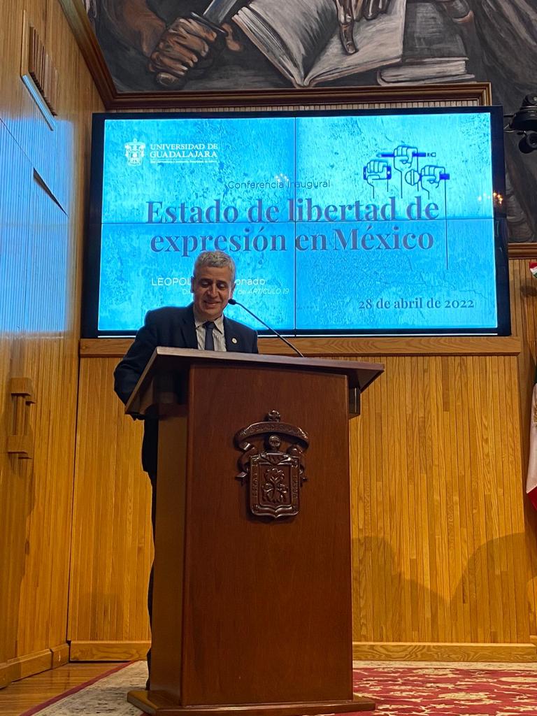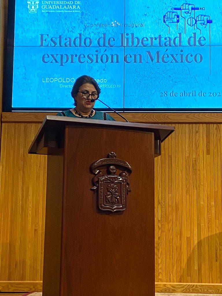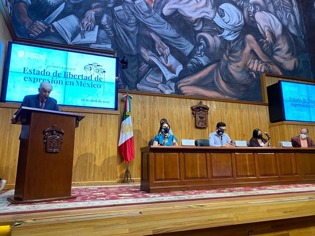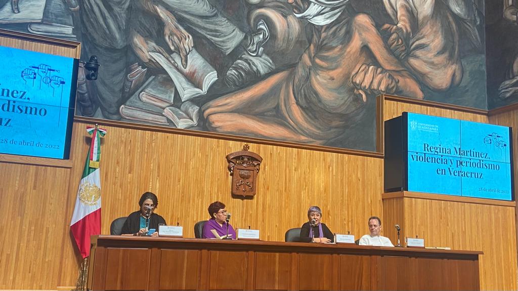 La Cátedra sobre Libertad de Expresión 2022 dedicó su primera edición a la memoria de la periodista veracruzana Regina Martínez y se realizó en el Paraninfo de la Universidad de Guadalajara. La conferencia estuvo a cargo de Leopoldo Maldonado, director regional de Artículo 19. En ella nos presentó de manera extensa el informe 'Negación: informe anual 2021 sobre libertad de expresión e información en México'. Posteriormente tuvimos una mesa redonda en memoria de Regina Martínez con la participación de Alberto J. Olvera (UV), Daniela Pastrana (Red de Periodistas de a Pie) y Verónica Espinosa (Proceso). El diálogo se desarrolló recordando la labor de Regina y advirtiendo sobre las condiciones actuales del periodismo en Veracruz y en México.