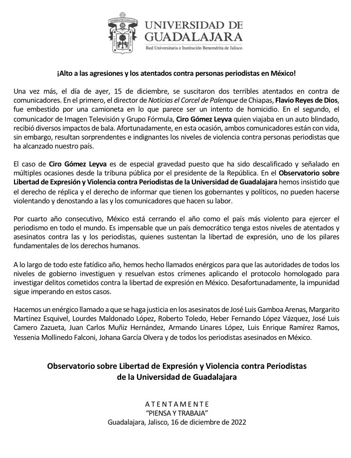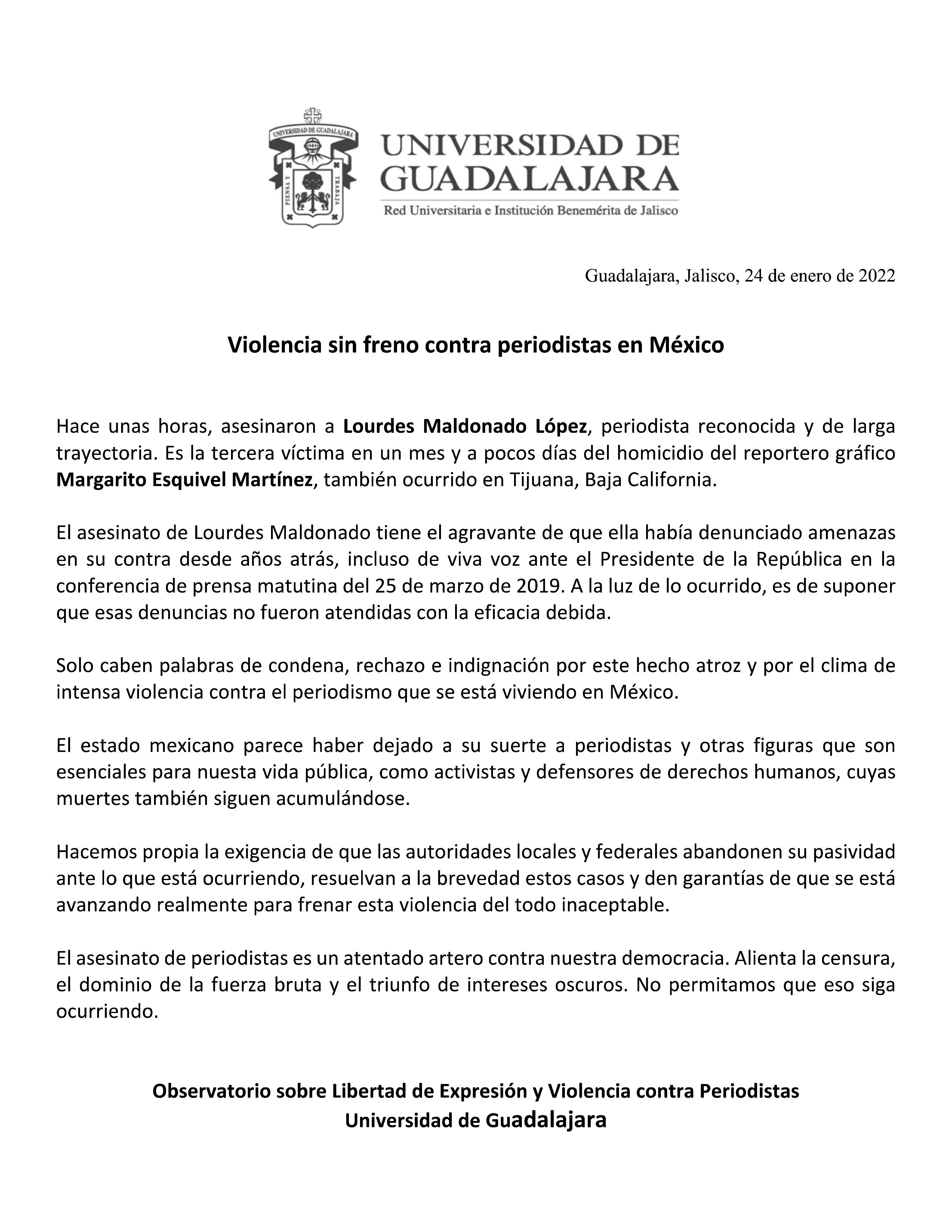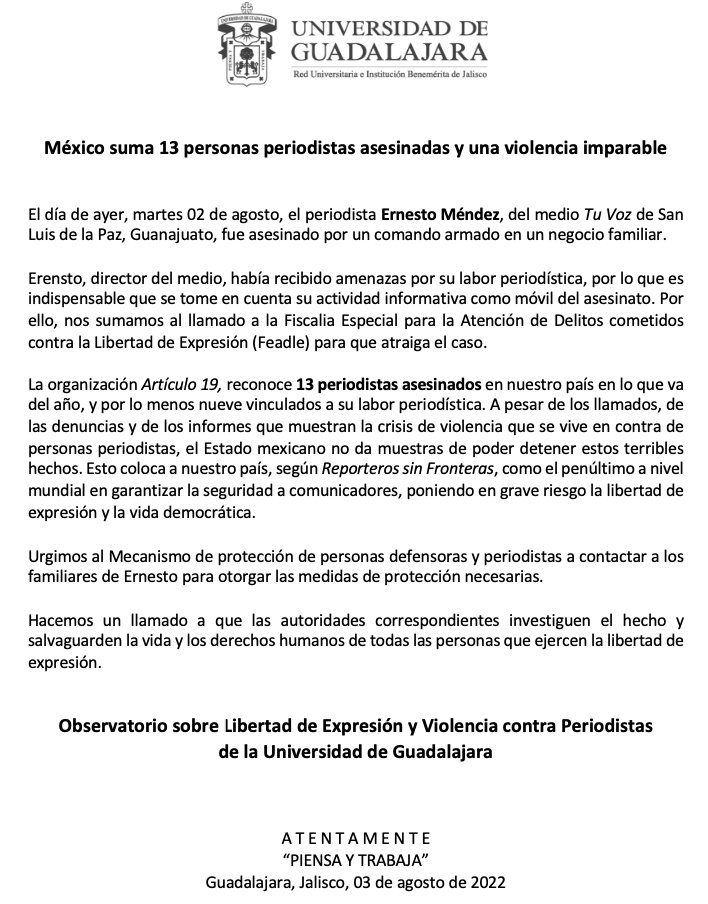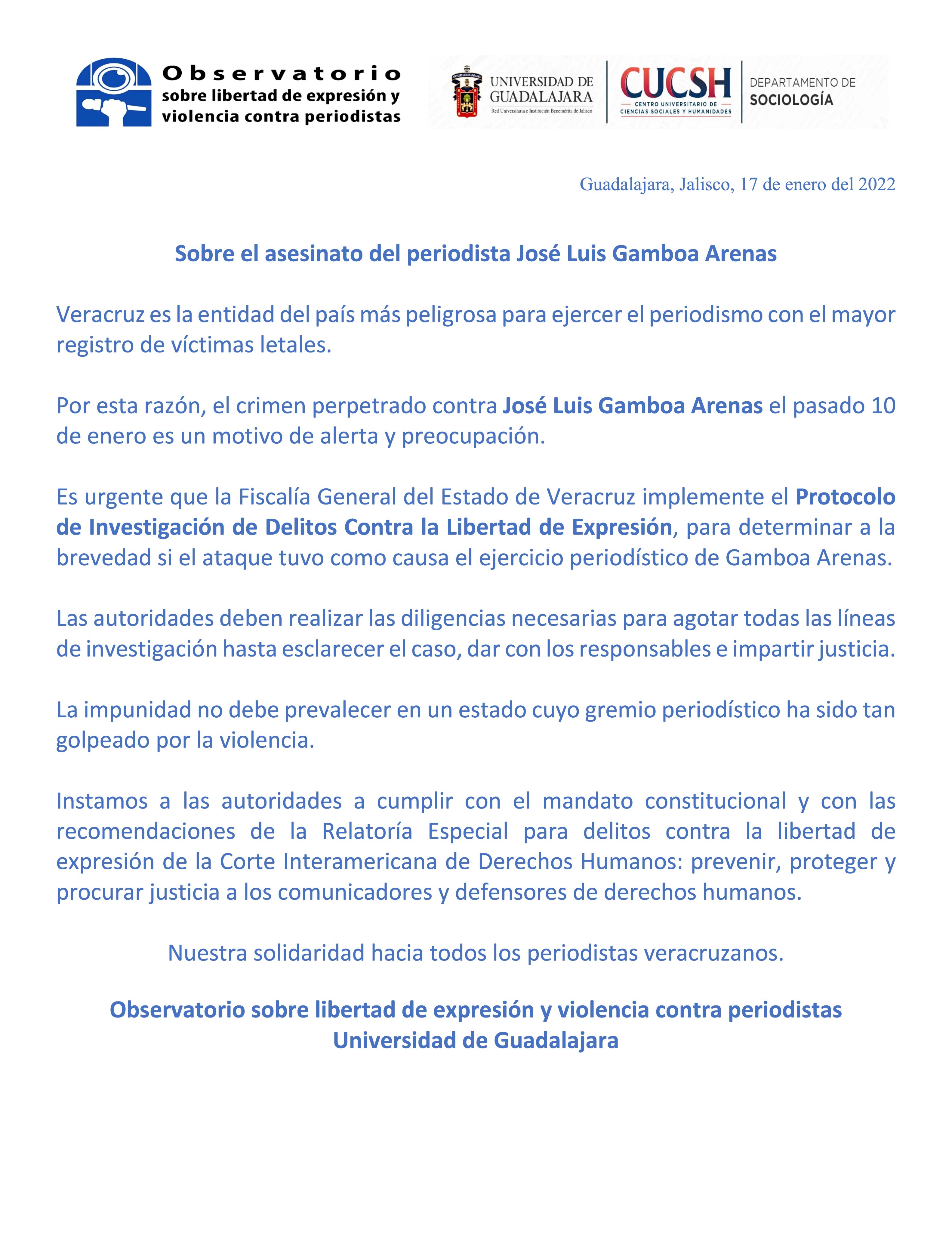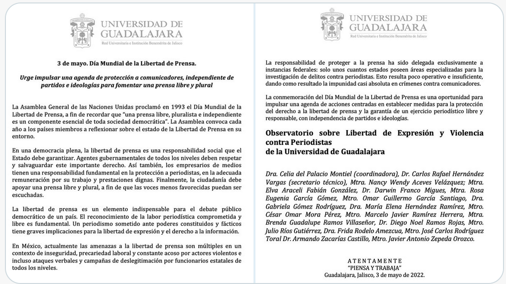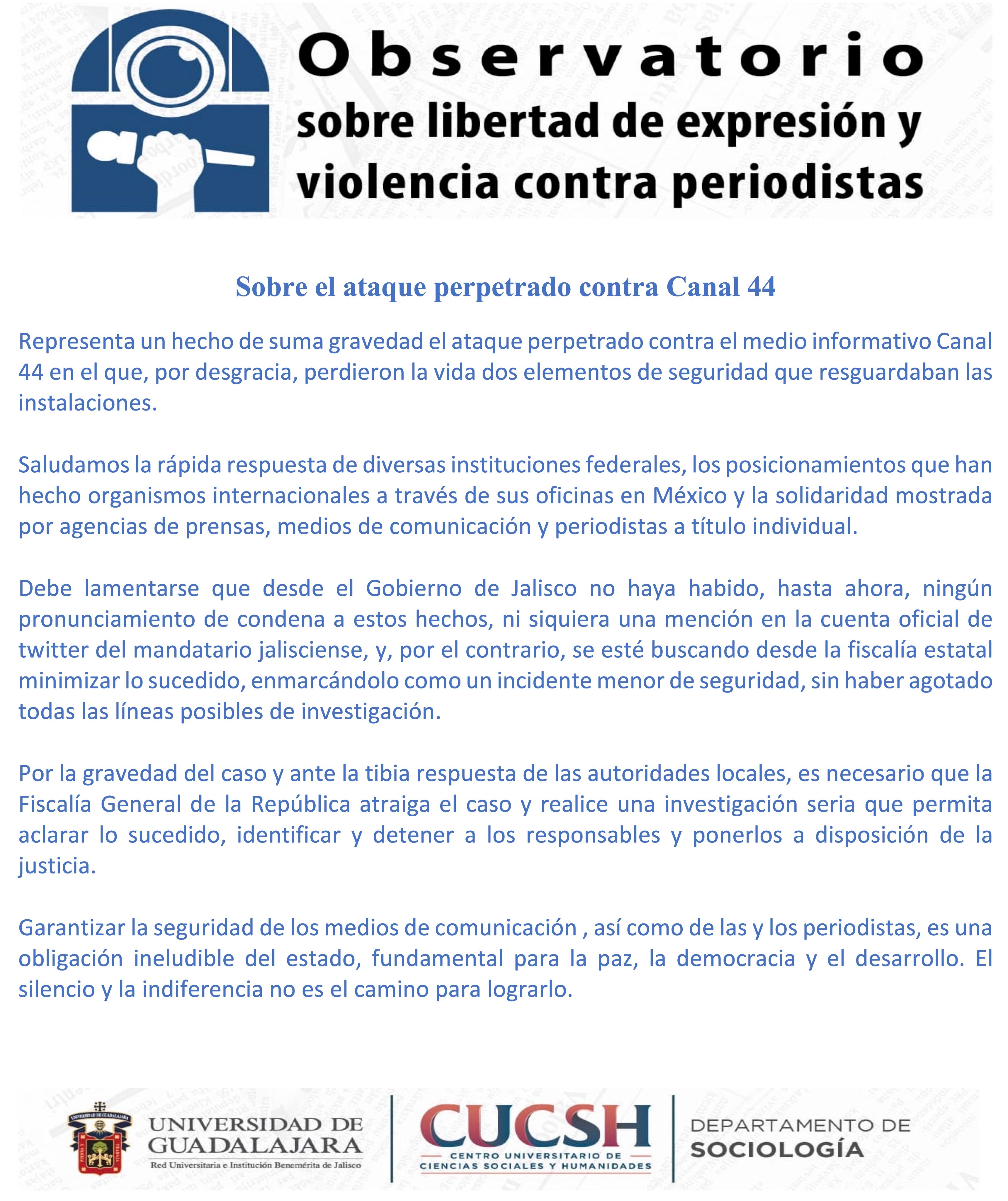 Observatorio sobre la Libertad de Expresión y violencia contra periodistas