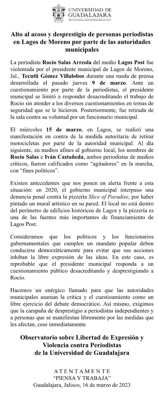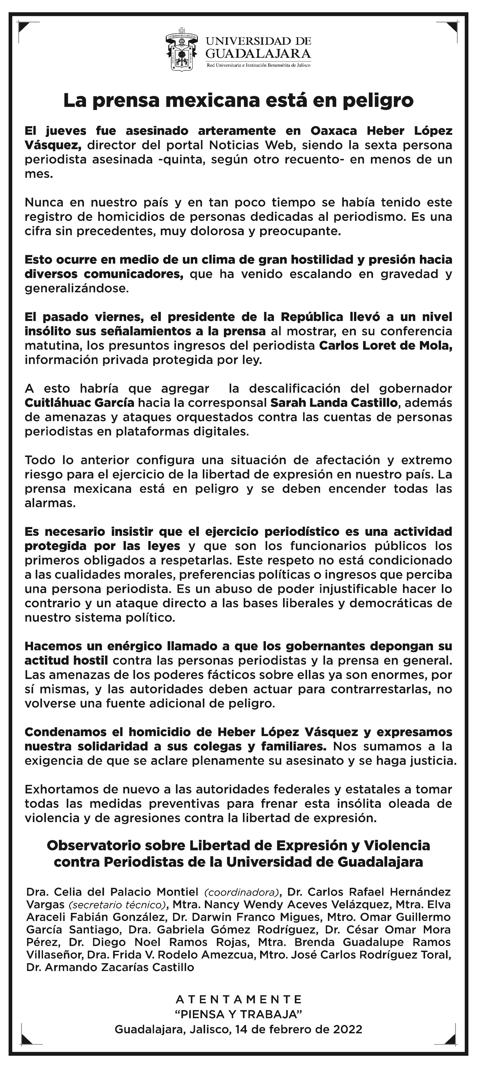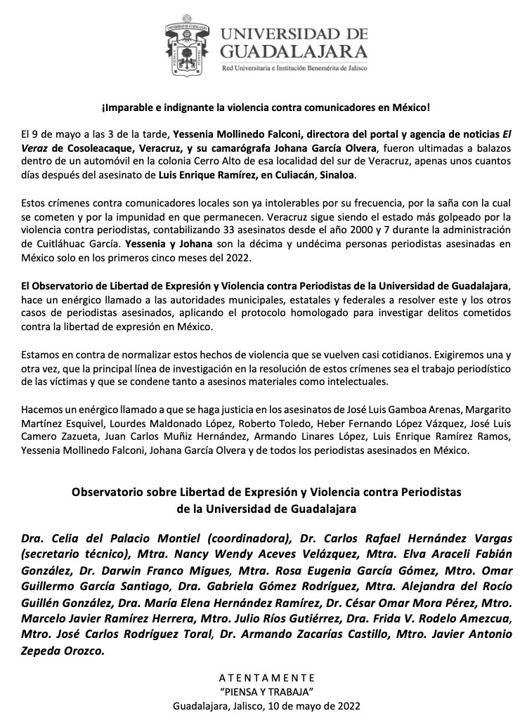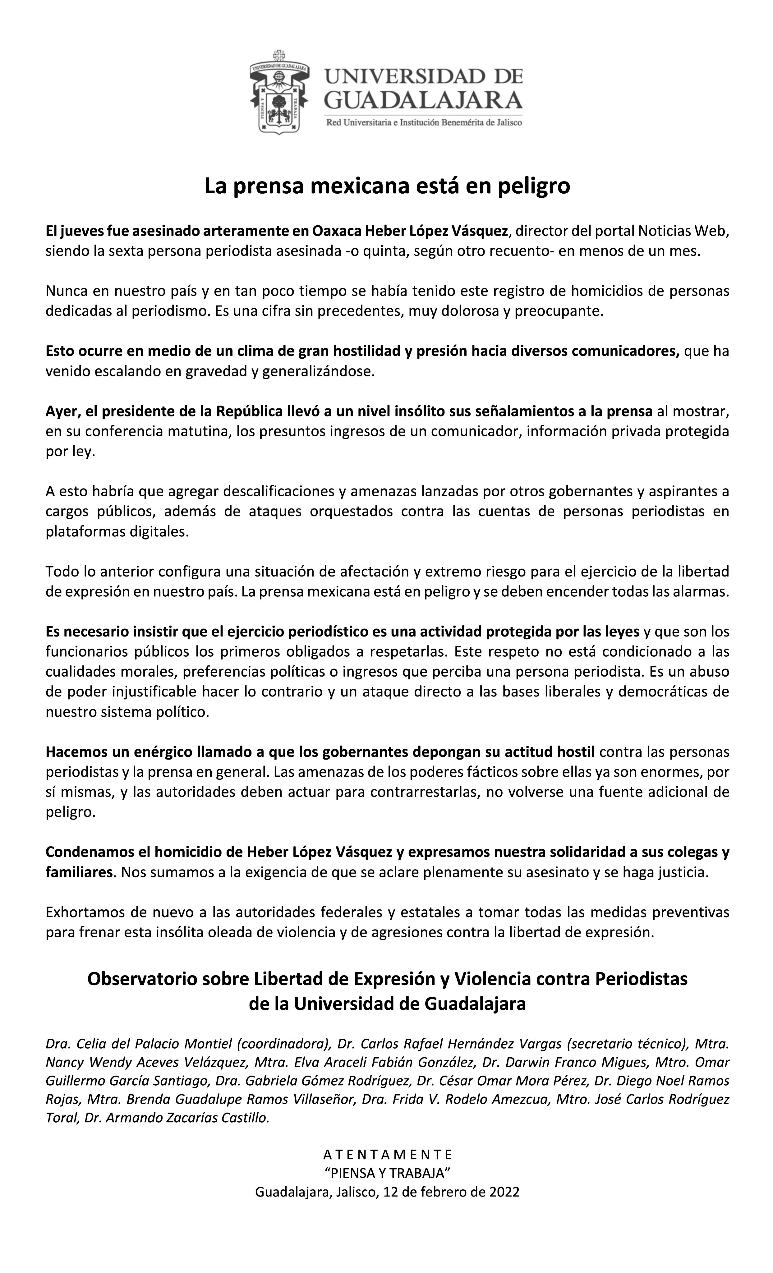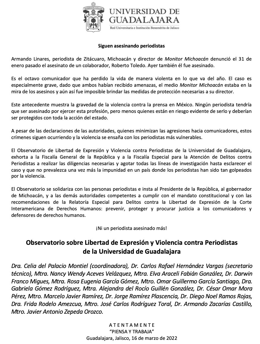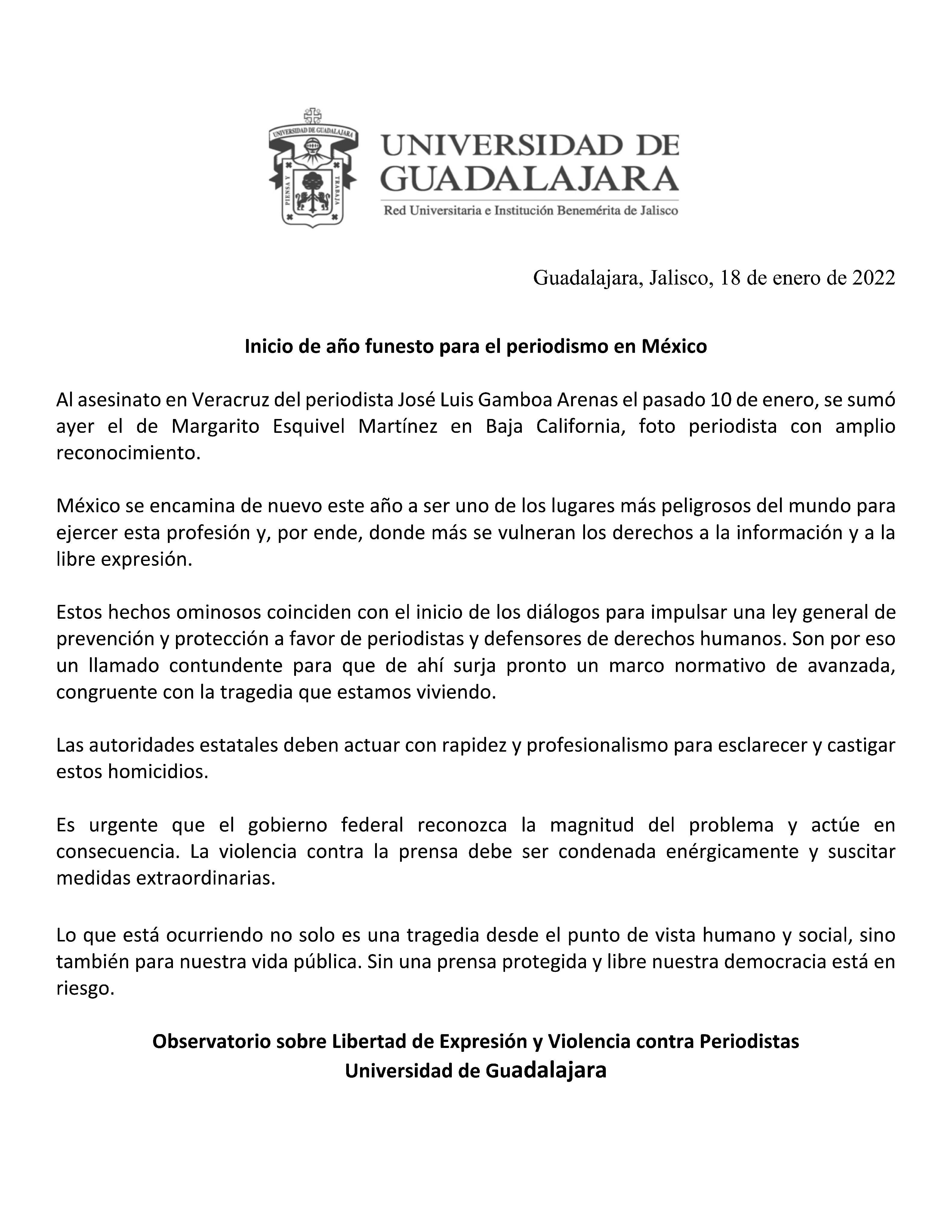 Observatorio sobre la Libertad de Expresión y violencia contra periodistas