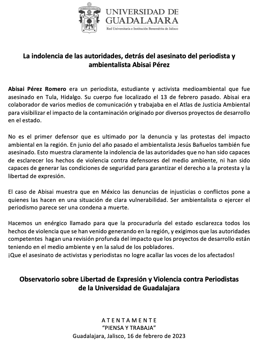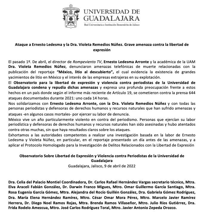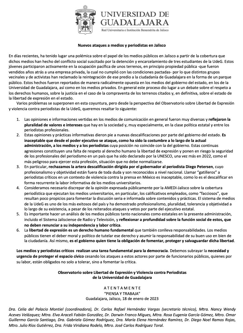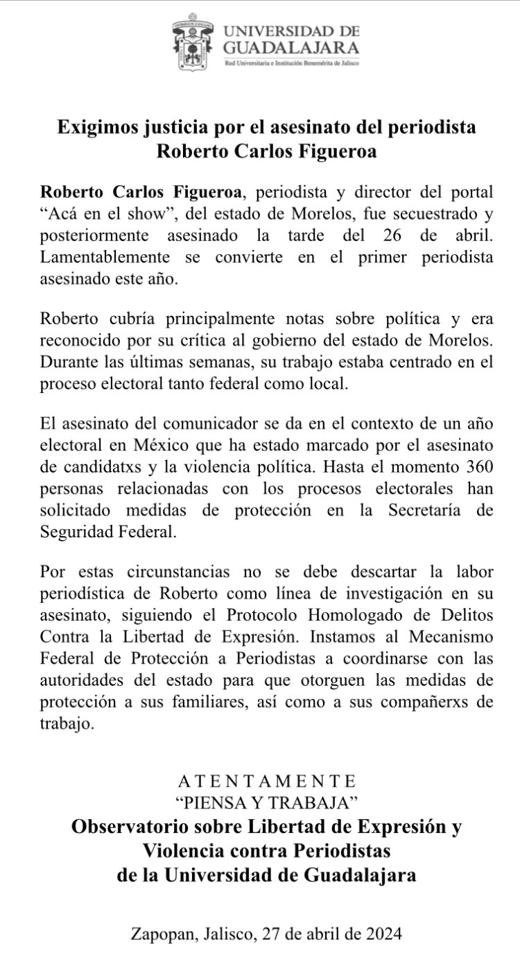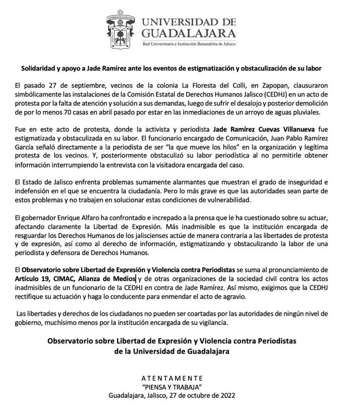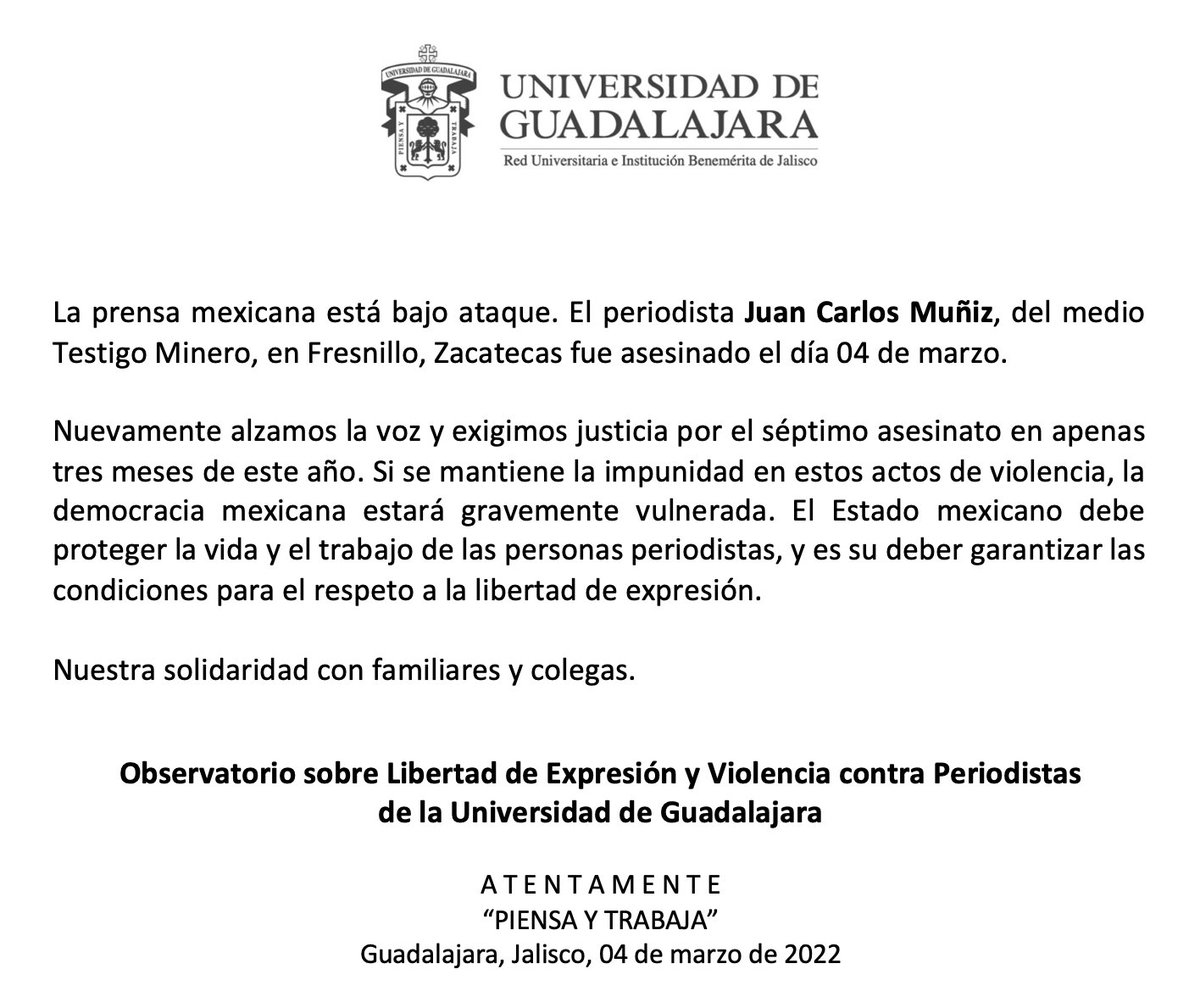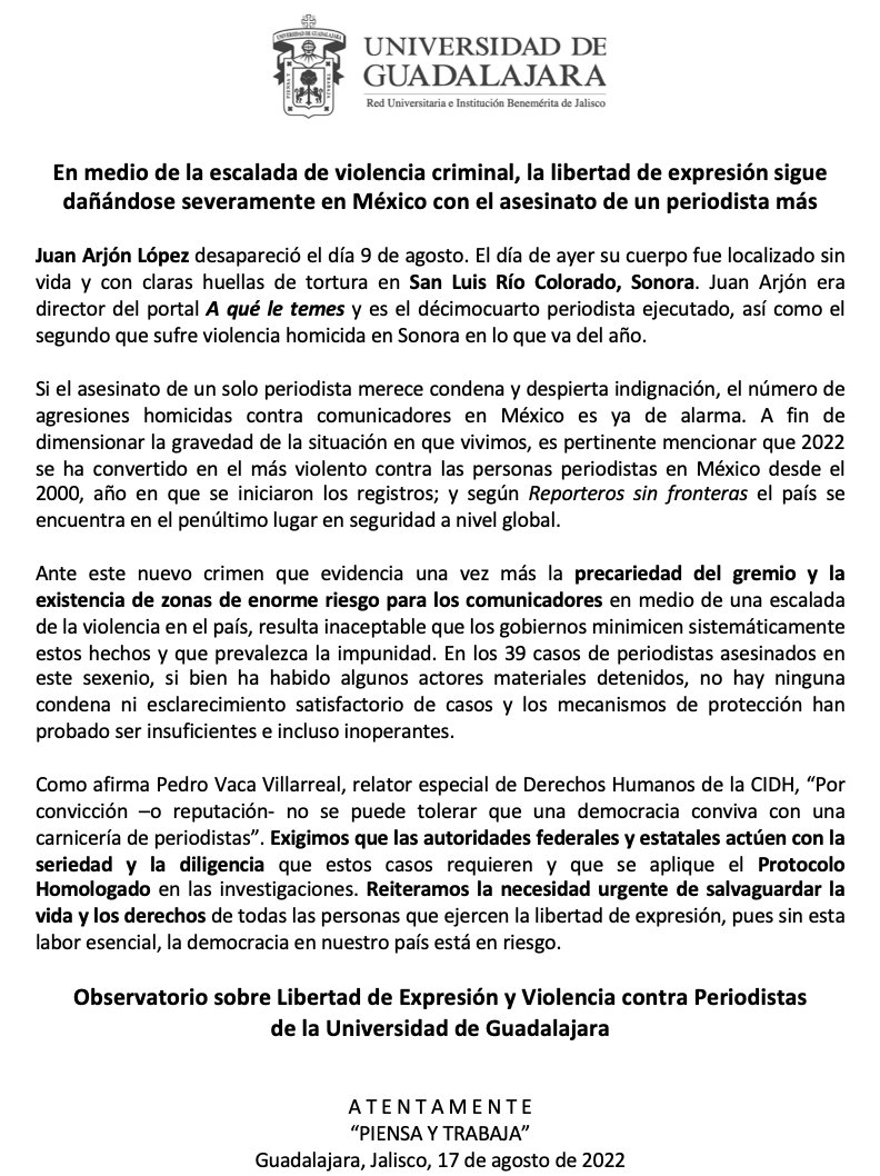 Observatorio sobre la Libertad de Expresión y violencia contra periodistas